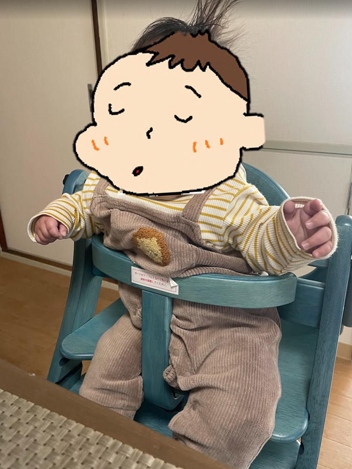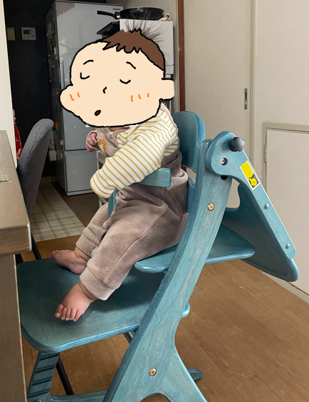 - 私たちがご飯を食べている間もハイチェアに座って